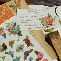 Autocollant à transfert rose brodée vintage pour journaling et loisirs créatifs