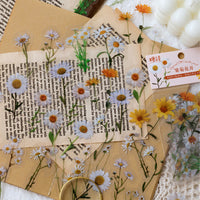 ✓ Magnifiques autocollants de fleurs – Autocollants transparents représentant des champignons, des tulipes, des marguerites, des fleurs jaunes, rouges et violettes, ainsi que des feuilles vertes. Parfaits pour décorer carnets et albums de scrapbooking.