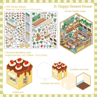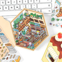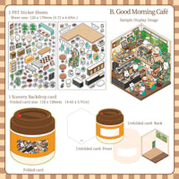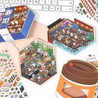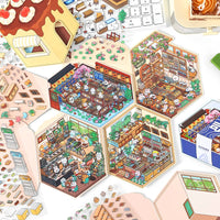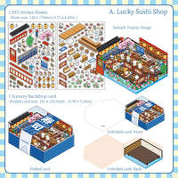 Ce set de stickers à thème comprend quatre scènes adorables : Lucky Sushi Shop, Good Morning Café, Happy Bakery House et Sweet Dessert House. Idéal pour journaux, planners et projets créatifs.