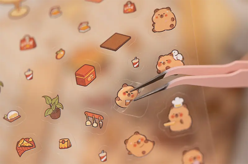 Conseil : Décollez délicatement le film transparent pour révéler les autocollants prédécoupés. L’utilisation d’une pince à épiler facilite leur manipulation.