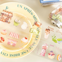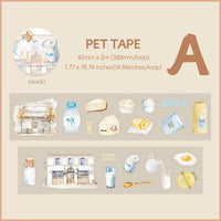 Se laisser tenter par un délicieux dessert l'après-midi ou une douceur sucrée avec une tasse de café fumant pendant un moment de détente est un pur délice. Inspirés par cela, nous avons conçu un charmant ruban adhésif, fabriqué à partir d'un matériau PET imperméable et durable. Présentant une délicieuse gamme d'éléments, notamment du pain, du jus, du lait, du thé aux perles, du café, des pâtisseries et des motifs de café, ce ruban est parfait pour les bullet journals, le scrapbooking, la journalisation, les planificateurs et autres projets de bricolage. Il ajoute une touche de fantaisie et un sentiment de douce satisfaction à vos efforts créatifs.