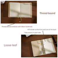 - Reliure (rechargeable) ou reliure à fil (avec marque-page en ruban)