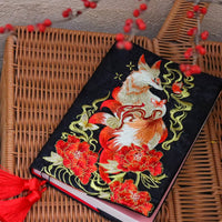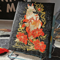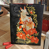 Maison Reliure et couverture de livre Red Fox A5 en tissu brodé, couverture de carnet de méditation, cadeau pour elle