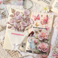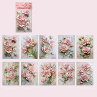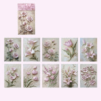Cet ensemble de papiers gaufrés fleuris vintage présente de délicats motifs botaniques avec une texture en relief de type typographie, ajoutant de la profondeur et des détails tactiles à vos pages créatives.
