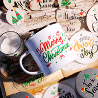 ✨ ホリデーシーズンの作品に華やかな輝きを添える、クリスマスワードのUV DTF転写ステッカーです。エレガントなクリスマスの名言、楽しい新年の言葉、心躍るホリデーフレーズが揃っています。