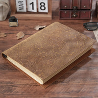 Made from premium Crazy Horse leather (full-grain cowhide), this ring binder features hand-carved vintage floral patterns with strong depth and texture. Each piece is individually embossed by skilled artisans, giving the leather a striking three-dimensional look that becomes richer and more characterful with use.