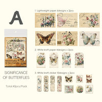 これは蝶、植物、生活シーンをテーマにした装飾紙とステッカーのセットです。スクラップブック、日記、プランナーに最適で、芸術的な創造性を解き放ち、プロジェクトにヴィンテージの美学を加えることができます。