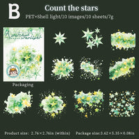 夢のような星がちりばめられたステッカーで、あなたのスタイルを高めましょう。日記やスクラップブッキングなどに宇宙的な魅力と幻想的な美しさを加えるのに最適です。