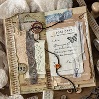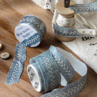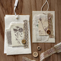 このソーイングテーマの撕れ風マスキングテープで、作品に可愛らしいハンドメイド感をプラスしましょう。ステッチ柄、ボタン、針、ヴィンテージ風の縫製モチーフが特徴で、スクラップブッキング、手帳、DIY制作に最適です。