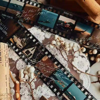 Inspired by old photographic film rolls, this vintage PET tape captures nostalgic lifestyle moments in a timeless film strip layout. The retro aesthetic adds storytelling charm to journals, scrapbooks, and creative planners.