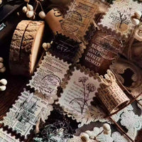Vintage Postage Stamp Die-Cut PET Washi Tape | Retro Journaling Decorative Tape