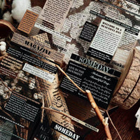 Wide Vintage Text PET Washi Tape | Retro Typography Background Tape