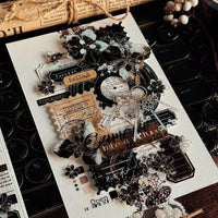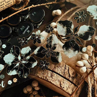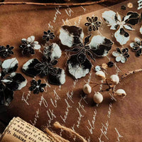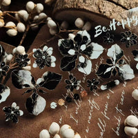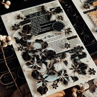 This black and white floral PET tape features timeless botanical illustrations enhanced with delicate gold foil detailing. creates a refined, elegant aesthetic.