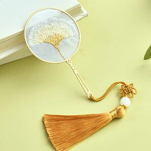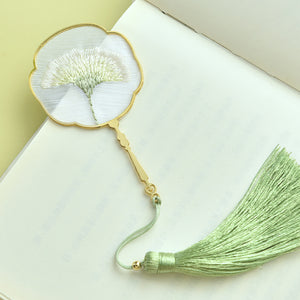 Elevate your reading experience with these beautiful bookmarks, where traditional Chinese and Japanese artistry meets modern elegance. Delicately crafted in a fan-inspired metal frame, each unique bookmark for books features a semi-transparent embroidered design—choose from graceful ginkgo leaves, whimsical dandelions, or delicate floral patterns. A silky tassel completes the look with soft charm.