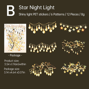 Transform your scrapbooks and art journals with our enchanting decorating string light stickers. These warm, twinkling lights paired with shimmering gems create a cozy atmosphere, perfect for enhancing your planner or any creative project. Bring your ideas to life and add a touch of magic to your memories.