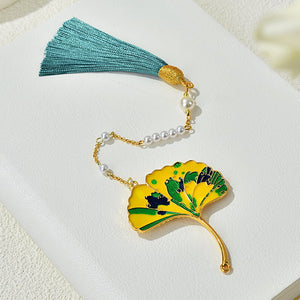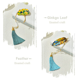 This enamel metal bookmark features traditional Chinese design aesthetics, inspired by nature—ginkgo leaves, feathers, and cabbages—capturing the elegance of classical Oriental style. Decorated with vibrant enamel coloring and finished with a tassel charm, it’s more than just a bookmark—it’s a piece of art between the pages.
