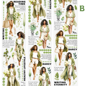 Add a touch of bohemian flair to your planners, journals, scrapbooking, and DIY projects with this vibrant sticker collection! Featuring trendy illustrations of Fashion women, cozy coffee cups, blooming plants, and whimsical lifestyle icons. Perfect for creative journaling, scrapbooking, or laptop decoration.