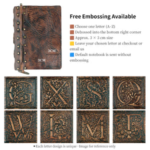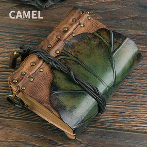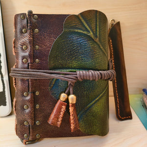 This vintage leather journal / notebook is entirely handmade, featuring a unique lotus leaf embossed cover that is natural, elegant, and one of a kind. With thick kraft cowhide paper and a generous 240 pages, it is both practical and collectible—perfect for writing, sketching, and journaling.