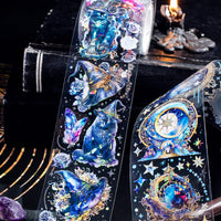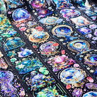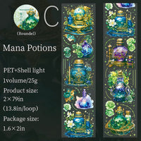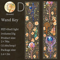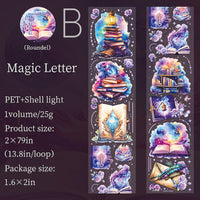 Magic Book PET tape, featuring enchanting designs like magic books, wizard hats, magic wands, and star disks. Perfect for scrapbooking, junk journaling, card making, planner and journal stickers, and DIY craft kits.