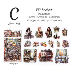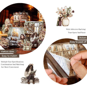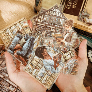 Our Retro Style Bookish Girl Life Themed PET Stickers offer a delightful mix of vintage charm and modern convenience. Each pack features 15 unique patterns, with two stickers of each pattern, including beautiful characters, cozy sofas, stylish bookcases, charming writing desks, and colorful floral accents, and more. Stickers come in different sizes so you can mix and match to create a personalized design. These durable PET stickers are perfect for scrapbooking, planner decorating, junk journaling, and DIY projects. Add a touch of nostalgic elegance to your creations.