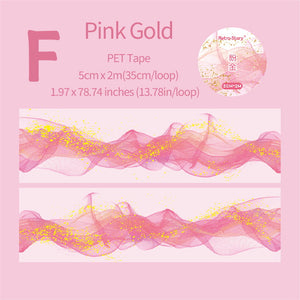 Transform your projects with this dreamy ribbon pattens PET tape. It uses hot stamping technology to make the tape pattern more gorgeous and attractive, Perfect for enhancing hand-written diaries, this tape adds depth and charm, making your creations truly stand out.