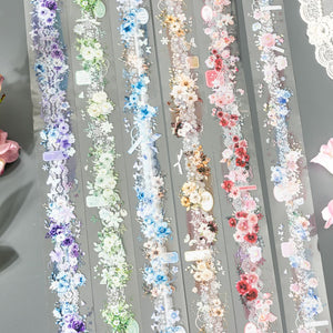 This PET tape pattern features flowers and bouquets decorated with lace and ribbons. Using this tape will make your scrapbooks, art journals and planners look more romantic and warm. It is also perfect for adding a personalized touch to gift packaging.