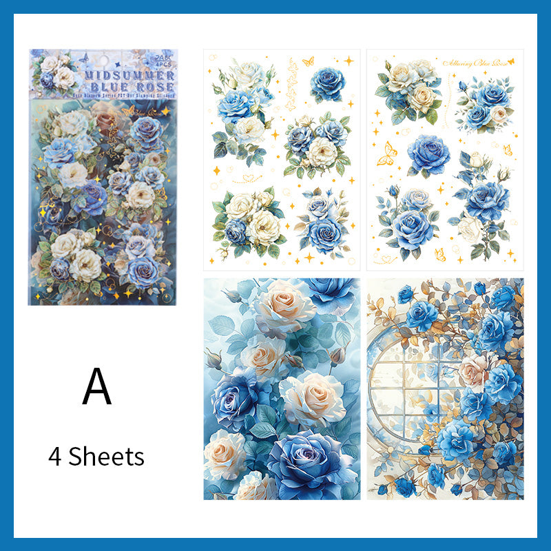 Each set includes 4 sheets (148×105mm) of beautifully cut floral stickers, featuring delicate rose designs with shimmering gold foil accents. Perfect for decorating planners, cards, gifts, and DIY projects. Lightweight and easy to peel, these stickers add a touch of charm to every creation.