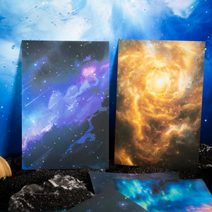 Add a touch of cosmic wonder to your creative projects with this starry sky scrapbook background set, featuring six unique designs. Each sheet includes an adhesive backing for easy application, allowing you to bring your creative vision to life effortlessly.