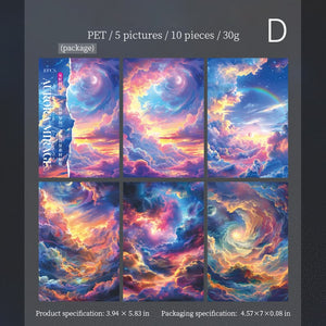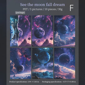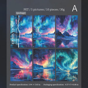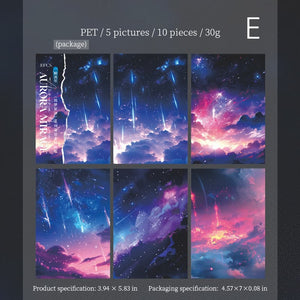 This set includes enchanting designs such as the aurora, nebula, snowy mountain starry skies, chaotic nebula, meteor trails, and mystical moon scenes.