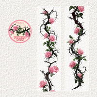 This thorned rose PET washi tape features elegant roses entwined with sharp thorns, blending gothic romance with vintage floral aesthetics.
