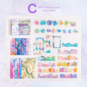 Bring soothing colors to your journaling with our Watercolor "Heals Daily Life" sticker pack. This beautiful collection includes a variety of watercolor-inspired designs, from soft florals to dreamy abstract smudges, perfect for planners, diaries, scrapbooking, journaling, DIY gift card, and crafts. Made with high-quality PET and washi paper, each sheet delivers vibrant detail and gentle transparency, letting your creativity bloom effortlessly.