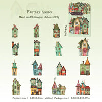 Whimsical fantasy house DIY stickers made from embossed hard cardstock with self-adhesive backing. Perfect for journaling, scrapbooking, planners, photo frames, notebooks, and creative decor. Easy to peel & stick, no glue needed.